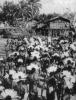 Groep Asmatters uit de Asmat op weg naar ritueel adoptie door andere stam