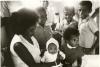 Zuster Jorna en twee andere vrouwen en een kind zitten op een prauw