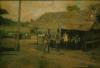Dorpsgezicht met enkele mannen en traditioneel gebouw |