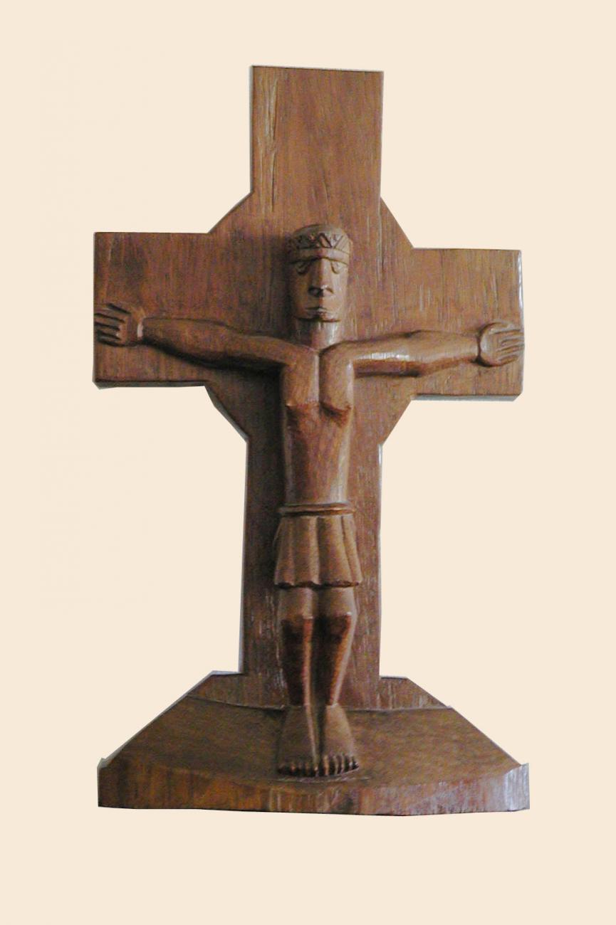 Crucifix depicting Christ on the cross. Made under the influence of the Roman Catholic mission. Probably made for the market.