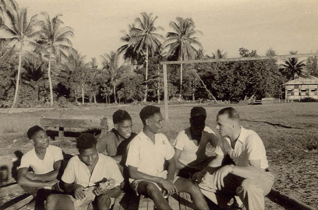 Franciscaans broeder Henk Blom onderhoudt zich met zijn praktijkleerlingen in Kokonau