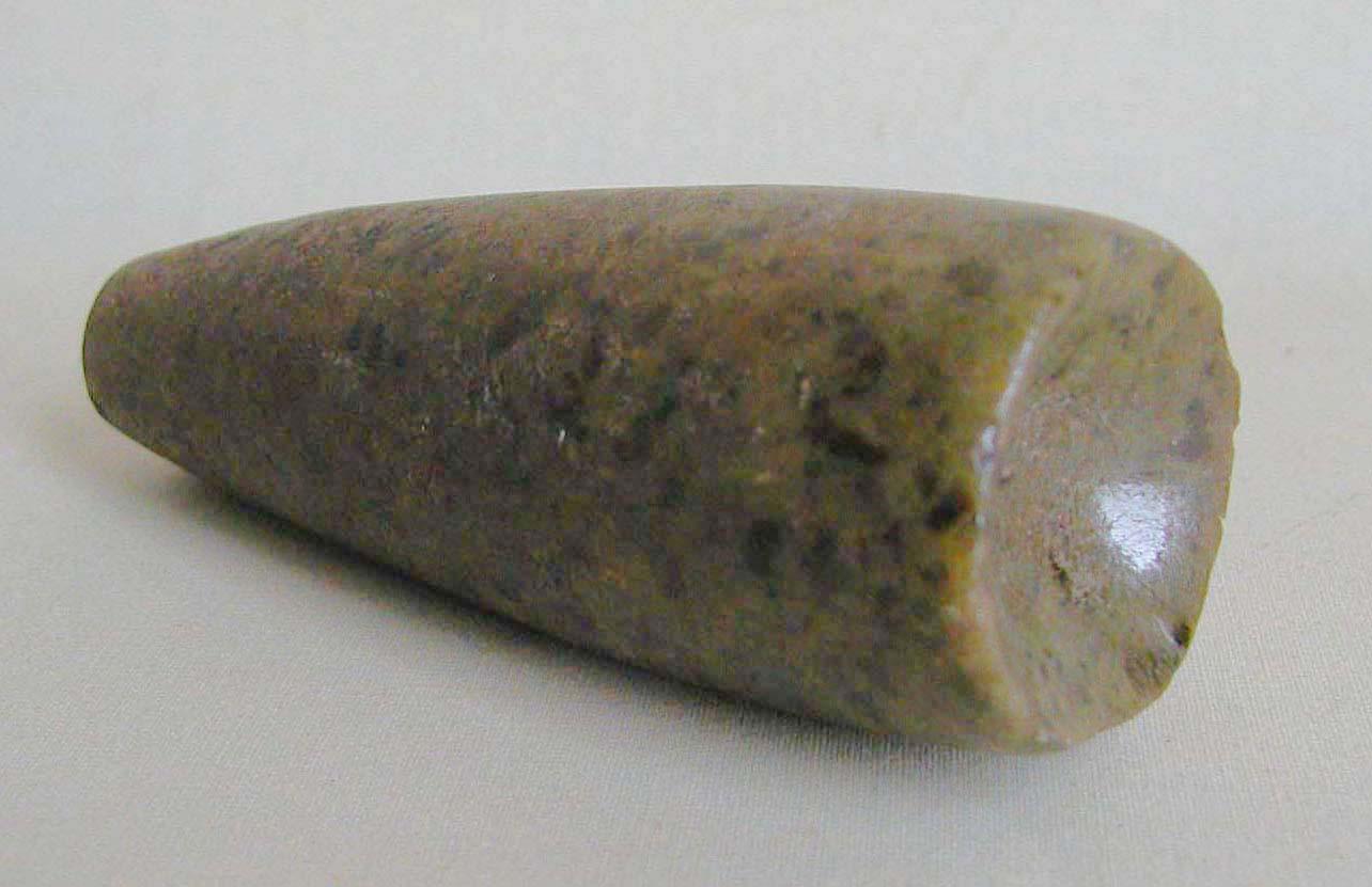 Bagian kepala dari pengocok sago terbuat dari batu. Kepala berbentuk lancip sedangkan permukaan bagian pemukul berupa lengkung. Ada dugaan bagian kepala pernah tersimpan di dalam tempat sarung terbuat dari kayu.