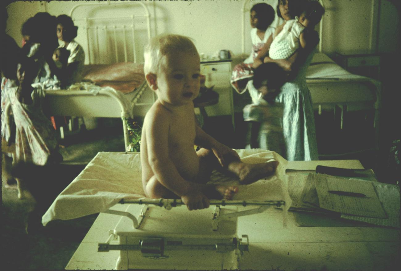 Polikliniek, baby wordt gewogen Objectcode BD/144/322 Beschrijving kliniek, baby Technische details Afbeeldingsoort Diapositief Terug naar overzicht