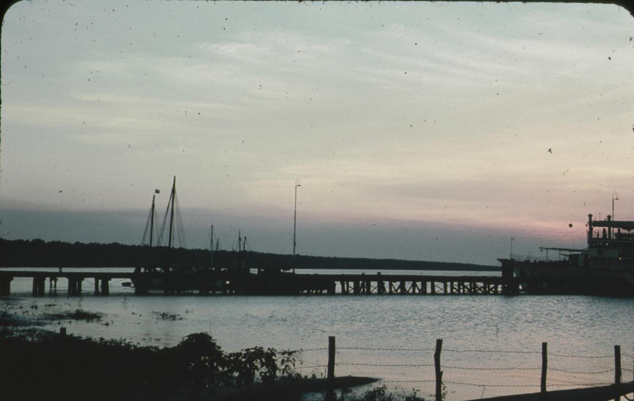 Haven bij avond, o.m. schip.