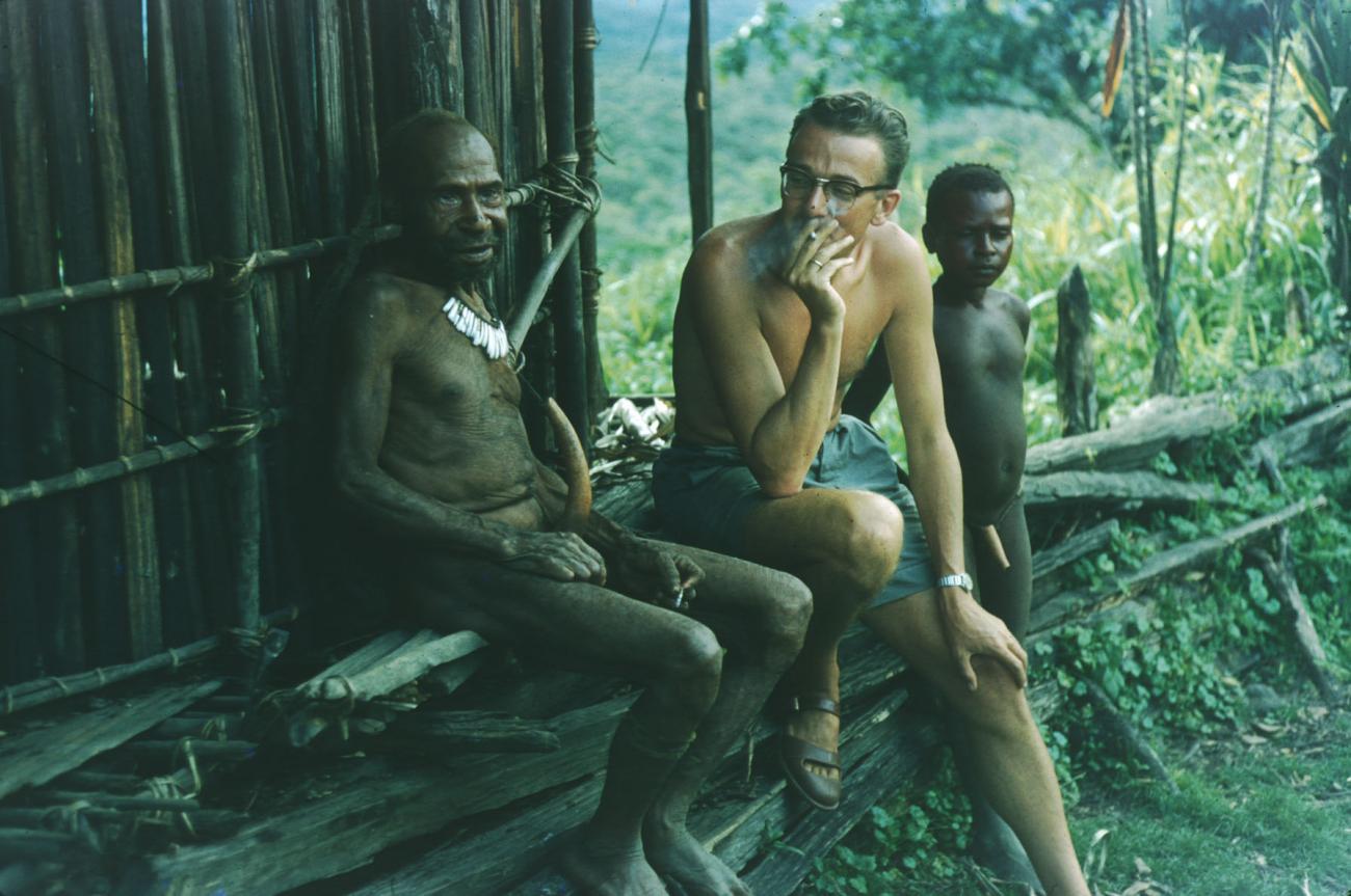 Rookpauze - Koloniaal rookt sigaret met Paoea terwijl jongetje toekijkt