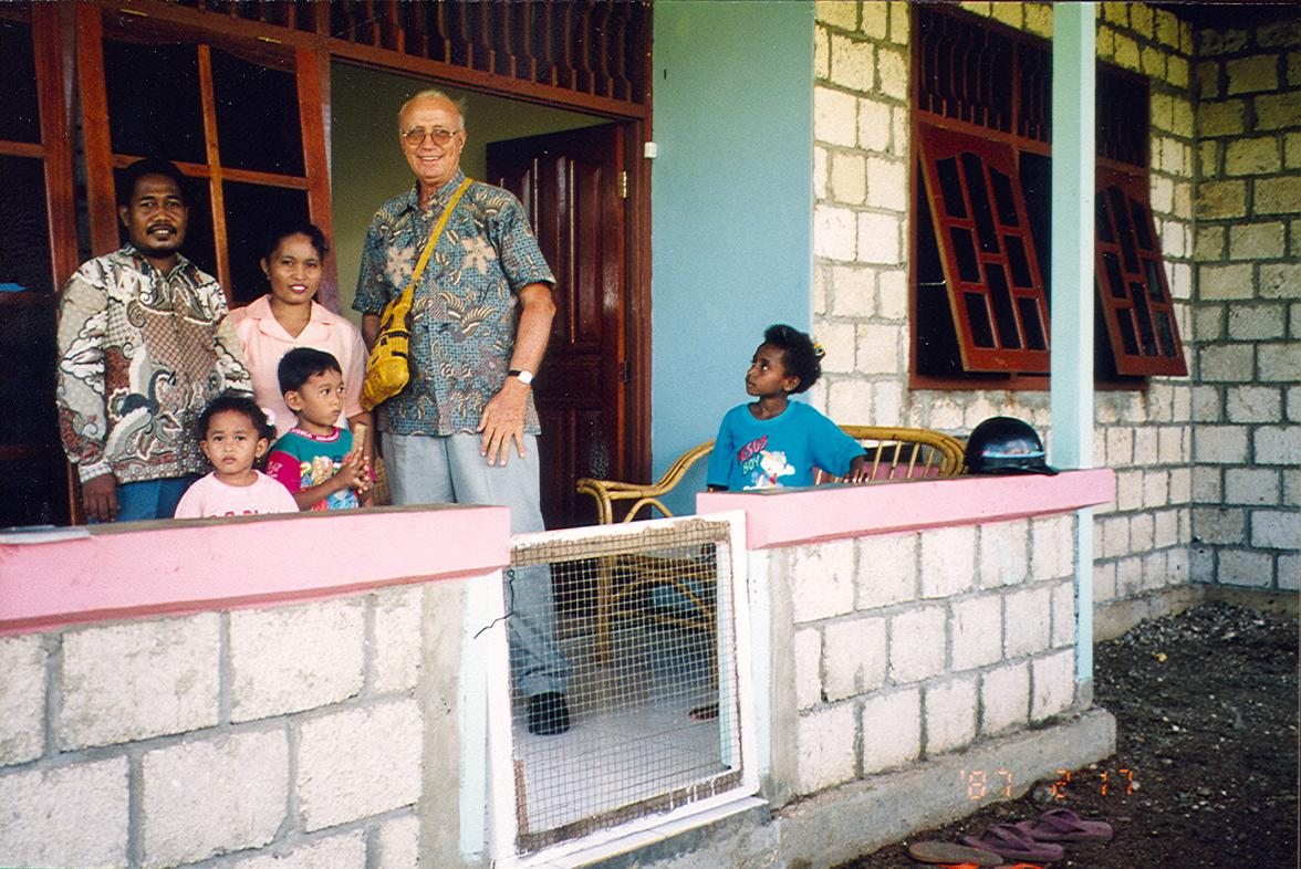 Missionaris op veranda met een gezin Objectcode BD/269/337 Personen Blom, H.F. (Maker) Terug naar overzicht