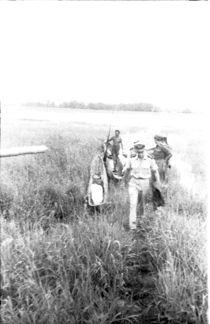 Mensen onderweg door het water, tussen het riet