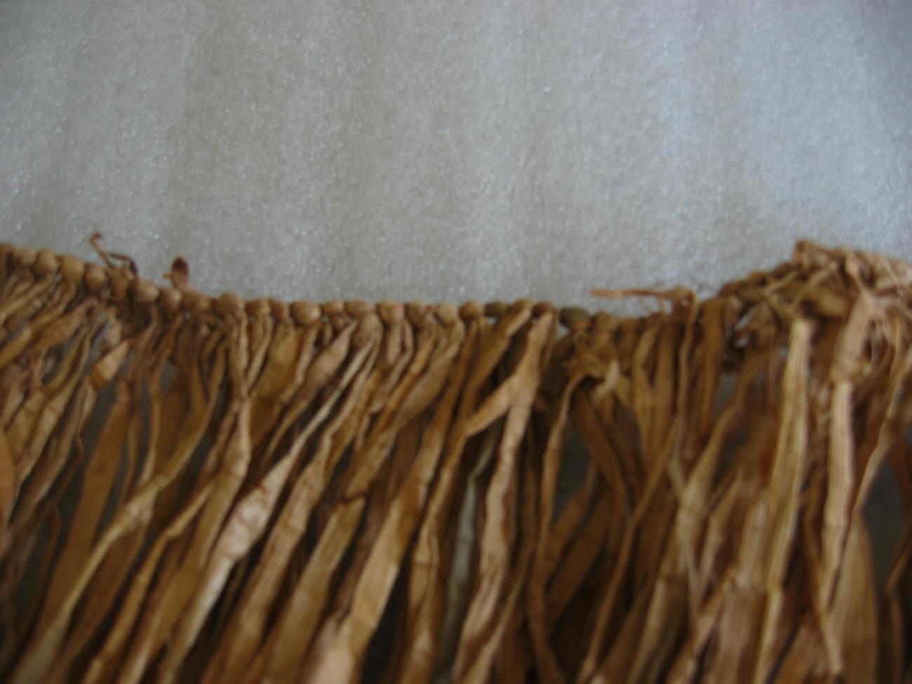 rokje. De stroken zijn aan een zijde aan een vezeldraad geknoopt.