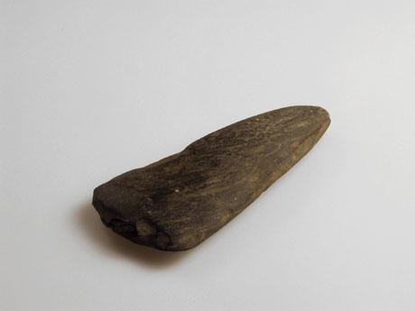 Bijlkling. Dwarsdoorsnede elliptisch, slechts meer of minder afgeplat, en van achter uitlopend in een punt, van langerekt tot kort. Zogenaamde mannenbijl. De 16 cm lange en 8 cm brede kling heeft nagenoeg platte zijvlakken en dient in het bijzonder voor het splijten van hout. Het lengteprofiel der bijlsnedevarieert van een half cirkelvormige tot nagenoeg rechte lijn met afgeronde hoeken. Dwars op de slijpvlakken is bij alle het profiel ogiefvormig en symetrisch. Over de gehele oppervlakte is de kling geslepen en gepolijst, doch de sporen der behakking zijn overal te herkennen. Als materiaal is gebruikt een grijsblauwe tot zwartblauwe steensoort, fijnkorrelig, kristallijn eruptief gesteente, chloromelaniet.