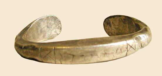 Armsieraad van zilver, met ingekerfde figuren. Het armsieraad is vervaardigd van oude Nederlandse munten. Dergelijke sieraden werden doror de Biak- Noemfoorse smeden gemaakt. Zij maken deel uit van de bruidsprijs.
