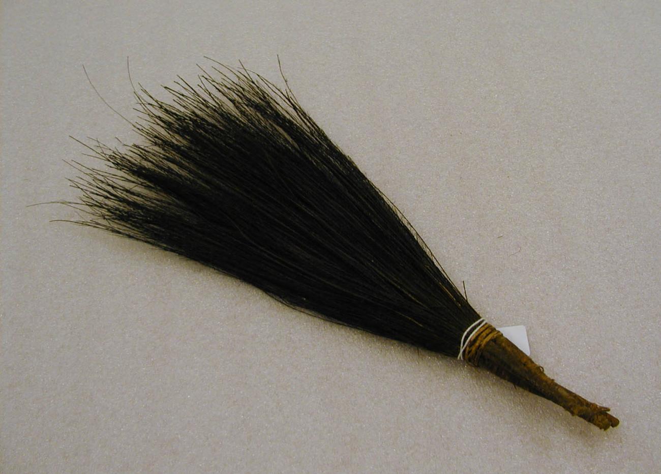 Sieraad, vervaardigd om rechtop gestoken in een gevlochten hoofddeksel gedragen te worden. Het sieraad is gemaakt van vier bundeltjes casuarisveren, omwikkeld met rotan. De bundeltjes zijn bijeen gebonden door een koord van boombastvezel. Al naar gelang de eigen smaak werden deze versieringen dagelijks of alleen bij feesten en rituelen gedragen.