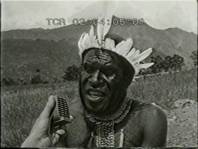 Beschrijving (bron: www.beeldengeluid.nl) SHOTS: Luchtopnamen van oerwoud waardoor zich de Baliemrivier meandert en van de Baliemvallei met talloze tuinen. Twee Amerikaanse zendelingen die motorbootje aan rivieroever gereedmaken waarbij menigte Dani's toekijkt. Snelstromende Baliemrivier waarover hangbrug gespannen is, belopen door valleibewoners. 01.40 Zendeling gaat hutten langs waaruit bewoners en varken te voorschijn komen en hem hartelijk begroeten. 02.33 Zendeling dient kinderen in de bil injectie met penicilline toe. Vrouw van de zendeling doet, geholpen door Dani's, de was in lege oliedrum, die ingenieus tot wasmachine getransformeerd is waarbij haar kindertjes op de schouders van Dani's toekijken. 03.12 Zendeling omringd door Dani's toont bijbelplaten en geeft uitleg bij de voorstellingen. Zendeling gebruikt bij studie van de taal bandopnameapparaat en laat een oude en een jonge Dani woorden in microfoon spreken ter samenstelling van een woordenboek. 04.15 Ommuurde tuinen van de valleibewoners met stenen wallen als afscheiding. Kind wiedt met de hand een tuin. Cameraschuwe vrouwen met hoofdnetten zetten het op een lopen uit vrees voor het 'magisch oog' . Jongens bekwamen zich in de jacht door als speren gebruikte stokken door een opgegooide hoepel te werpen. Man vlecht van gras eenvoudige bovenarmversiering. 05.30 Bij hut rondscharrelende varkens, een bijzonder bezit. Leden van bevriende stam komen aan bij het dorp, waarvan de bewoners hopen gras bijeenbrengen, zich met roet en varkensvet opmaken, met stenen bijlen houten palen t.b.v. brandhout kloven. Met gepunte stok wordt aarde open gebroken en de kluiten met de hand verwijderd zodat ondiepe kuil ontstaat. 06.40 Opbouw op onderlaag van stenen van een rechthoekige brandstapel die wordt aangestoken waardoor steenbrokken op de brandstapel worden verhit. Man laat zich door helper opmaken, Dani demonstreert werking van mondharp, die in de neus wordt meegedragen. 07.13 Varken wordt opgedreven en aan de voornaamste gasten getoond. Hoofdman van de ontvangende stam doodt met pijl en boog door stamgenoten omhoog gehouden big en vervolgens een varken. Viertal gedode varkens wachtend op behandeling. Op separate brandstapel worden de haren weggeschroeid waarna de opperhuid met bamboemessen wordt afgeschraapt en het dier met vlijmscherpe bamboemesjes ontleed. Een mondharpspeler. 08.31 Met gevorkte stokken worden de op de brandstapel verhitte stenen opgepakt om de met stro bedekte wanden en vloer van de braadkuil te bekleden. Het vlees en wat groenten worden op de stenen gespreid, het geheel met gras bedekt en rondom met buigzame stokken vastgesnoerd. 09.43 Lap gebraden vlees wordt uit de kuil getild. Gebraden lappen vlees klaar voor verdeling. In kring gezeten mannen doen zich tegoed aan de feestmaaltijd. Gezin van zendeling woont feestmaaltijd bij. 10.25 Eénmotorig vliegtuigje stijgt op van de airstrip. Luchtopnamen van de door krans van wolken omgeven bergtoppen en van meanderende Baliemrivier. EINDE.