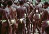 Groep Asmatters met traditionele versiering en hoofdtooi