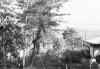 Nederzetting aan de kust, moderne huizen, vrouwen en meisjes wandelend over straat |
