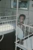 Meisje met gebroken been in een ledikant in ziekenhuis. |