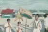 Koninginnendag, jongens met zelfgemaakte versiering op stokken. |