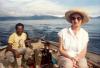 Vrouwen zitten in vissersprauwen aan de rand van het meer |