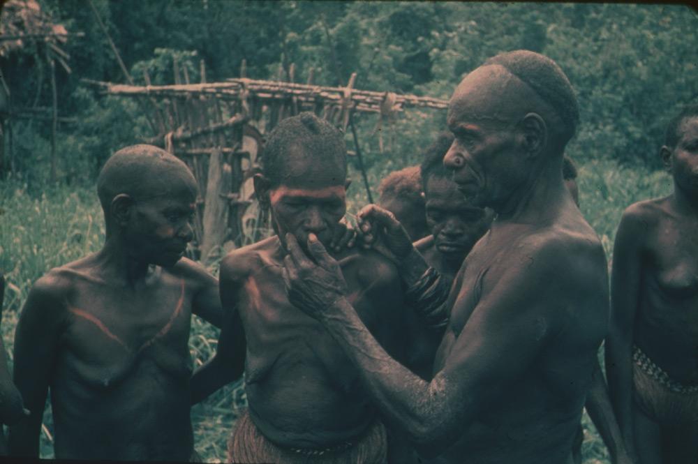 Old man, old woman, bodypainting, clothing, skirt, tool, hairdo, use of pigment