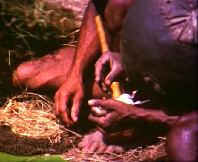 'Hotaly Pupukhe' is the second part of Camps 31. The first part is called 'Funeral Rites II'. See also 'Hotaly Milige Logo' (Camps 6). Film: Super-8, Kodachrome II, Colour Length : Funeral: approx. 40 meters Hotaly : approx. 30 meters Running time : Funeral: approx. 10 minutes Hotaly : approx. 8 minutes Filming Date : Funeral: July and September 1971 Hotaly : August and September 1971 Place : Yiwika, Baliem Valley, West Irian. Filmed by : J.A.E. Camps ofm. Description of Hotaly Pupukhe : Hotaly or girl's initiation ceremony, occupies the second half of Camps 31. This ceremony was held in the vicinity of Yiwika and is usually held on the onset of a girl's first menstruation. The actual location of the ceremony was Pelaloba, a place of many trees. On the onset of a girl's menstruation, she informs her mother and etai is held in the hunila that night. The following morning, the girl's mother puts mud on the girl. Other girls express sympathy with the girl and ask to have put mud on them also. A play involving a mud battle begins. In general it is the boys against the girls and women, but if a girl is being put upon too hard, a boy often comes to her aid out of sympathy. In this film the action is picked up during the preparation of special skirts, the kiluak and isibat and at the beginning of the mud battle. The etai of the previous night and the mudding of the girl had been completed and is not shown in this film. During the course of the mud fight, lasting about an hour, mud is thrown, rubbed in faces, tempers are lost and blood can be spilled, but it is meant to be in good fun. The sides then divide according to sex and they go their separate ways to wash off the mud accumulated during the fight. The older sister of one of the girls for who this ceremony is held, Lageialoklek does not wash off the mud out of sympathy for her. The next step is to put a new skirt on the girl. The older sister is seen doing this for Pupukhe. The skirt is the sali or that of girls not yet married. Boys and men are excluded from this but can be seen at a distance casually observing all they can. Words are spoken at this time but they remained unknown, are wusa. A sweet potato feast and more etai are reported to follow this, but again this is not shown on the film. After a girl has had her hotaly, it is almost certain in the next large pig feast she will change to the jokal or married woman's skirt and arrangements for her marriage initiated. Persons : 1) Pupukhe 2) Dabukhe 3) Lageialoklek 4) Tukhe Terminology : 1) isibat: grass of the girl's skirt 2) ami: uncle or one in special relationship 3) etai: term for dancing and singing 4) sali: girl's grass skirt 5) jokal: woman's skirt 6) hunila: cook house 7) kilukuak: small poorly made skirt worn for working or during menstruation and this mud feast This description was prepared by Larry L. Naylor, Southern Illinois University, in collaboration with J.A.E. Camps ofm, and using local informants. The chief informants here were: Kirilmo, Uwo and Hanoma.