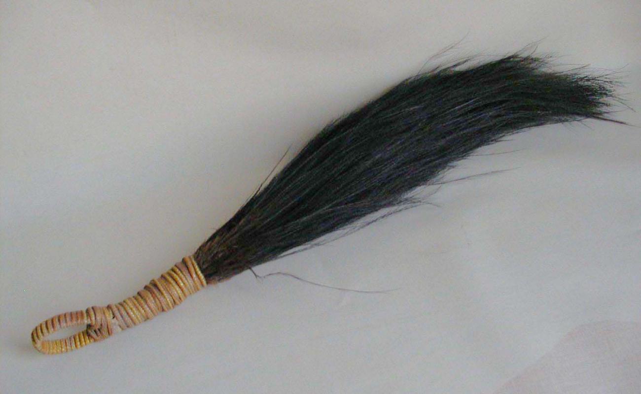 Bracelet, made of a bundle of casuaris feathers or a casuaris tail. The base of the bundle is wound with a cord made from tree bark fibre and orchid fibre. At the end an eye is plaited, round with the same chord. Depending on personal taste such decorations were worn daily or only at feasts.