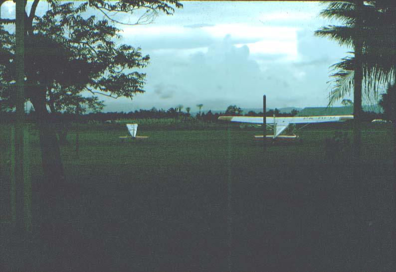 Overzicht Sentani Airport. Duidelijk zichtbaar is een oude DAKOTA. Die vlogen in dezeventiger jaren nog.