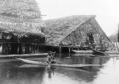Lake Sentani was explored using the ‘Zeemeeuw’ rescue boat, which was carried across to the lake on the shoulders of a group of porters. In his report Wichmann wrote: “After every trip, the deck of the expedition ship changes into an improvised laboratory full of stones, bottles and test tubes with alcohol, and numerous ethnographic objects which were to be packed into trunks".