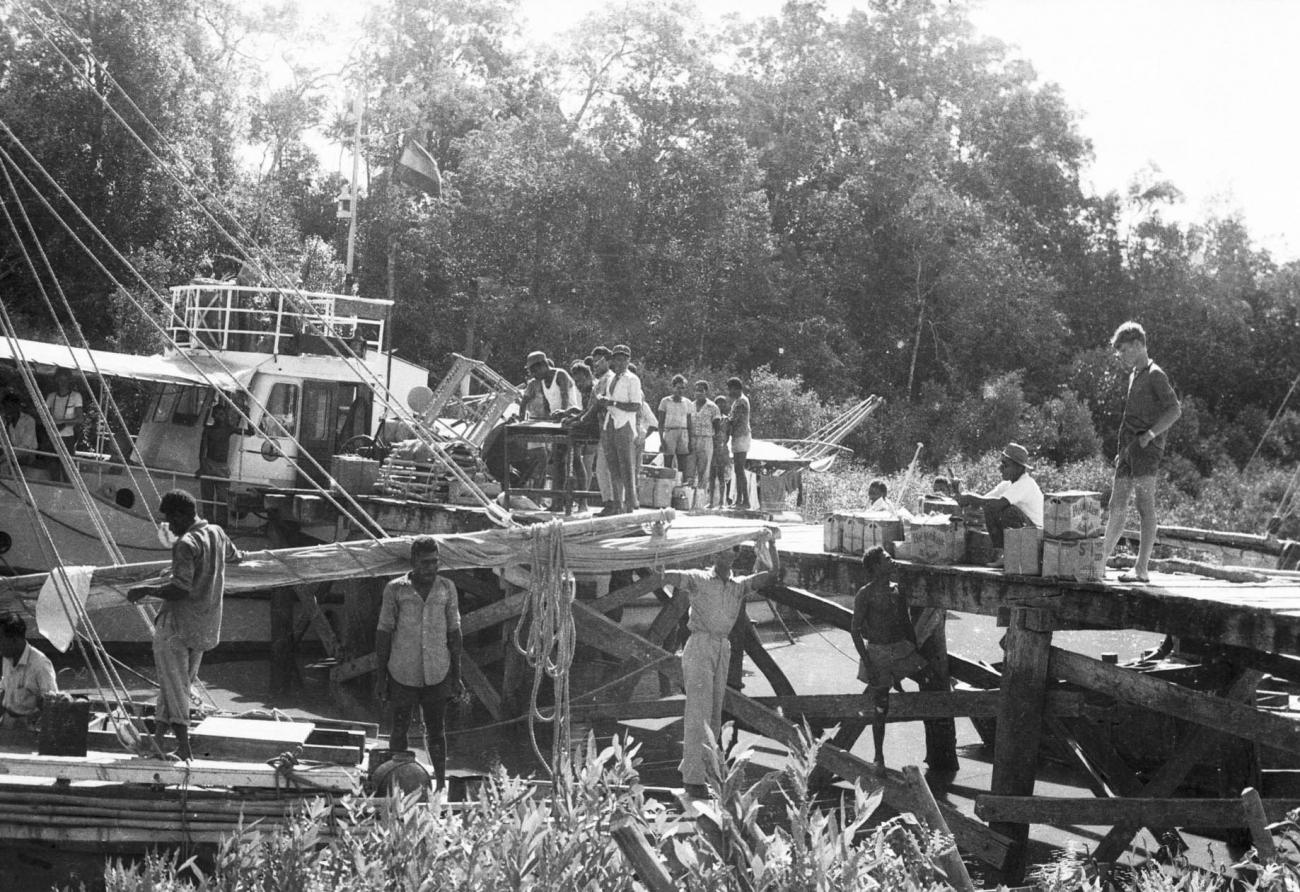 Bedrijvigheid bij de boten aan de aanlegsteiger