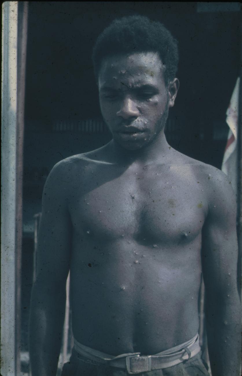 Jonge man met huidziekte Objectcode BD/144/487 Beschrijving man, ziekte, huid Technische details Afbeeldingsoort Diapositief Terug naar overzicht