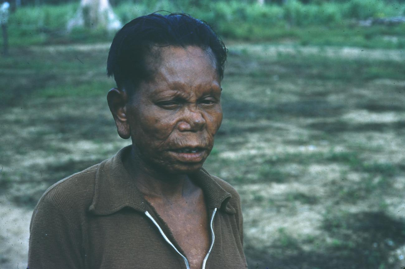 Man - Vrouw met bruin vest, met licht door framboesia aangetaste neus