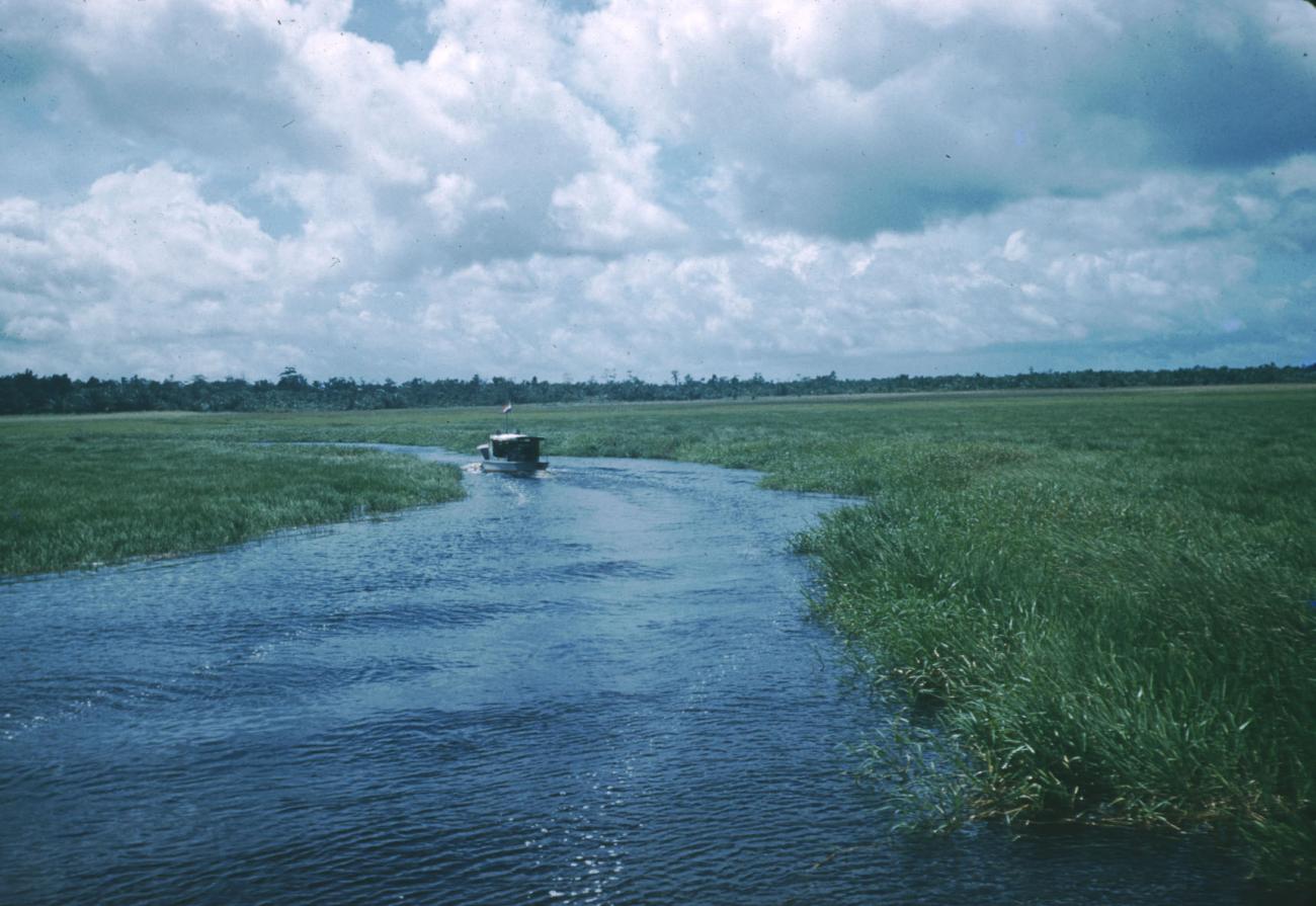 Boottocht over rivier - Rivier kronkelt door "polderachting"landschap