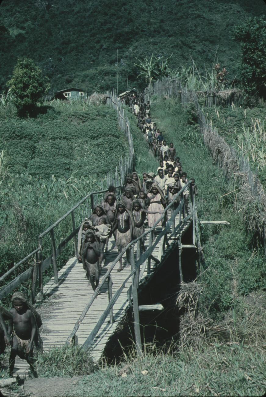 Onderweg over een brug