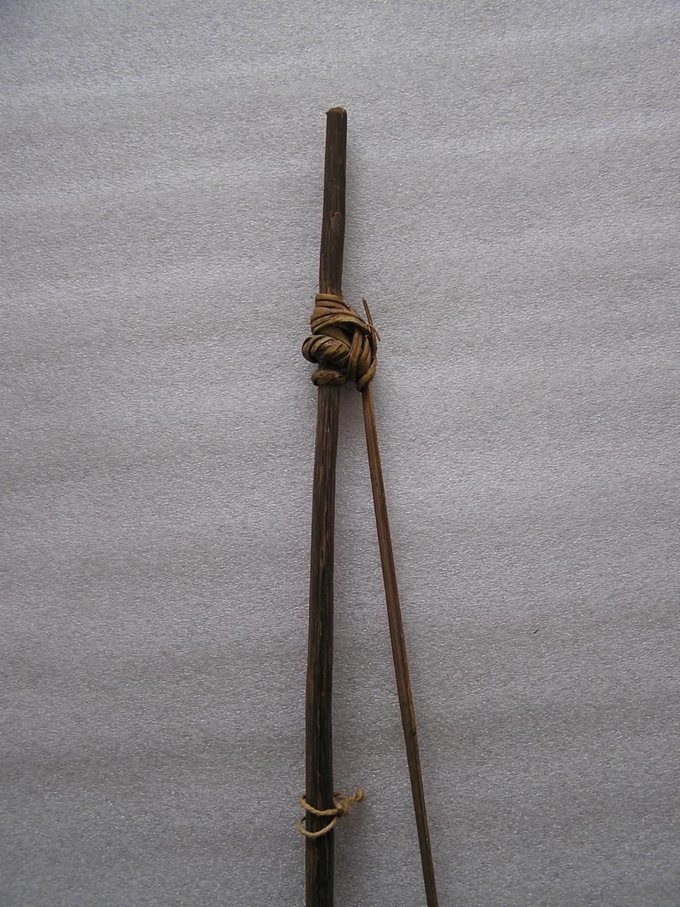 Uit hout van de nibungpalm vervaardigde boog met een pees van gespleten rotan. Door mannen gebruikt voor de jacht, maar ook als wapen bij het beslechten van conflicten.
