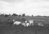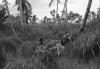 Papoea-jongen met koe en kalf tussen palmbomen en hoog gras |
