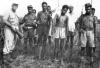 Omgekapte boomstronken voor huis in Zuid Nieuw Guinea |