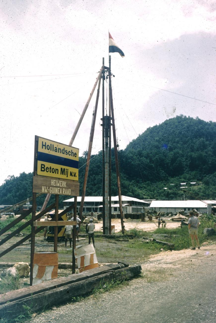 Tijdelijk gebouw Nieuw Guinea Raad - Heiwerkzaamheden door Hollandse Beton Maarschappij in opdracht van de Nieuw Guinea Raad